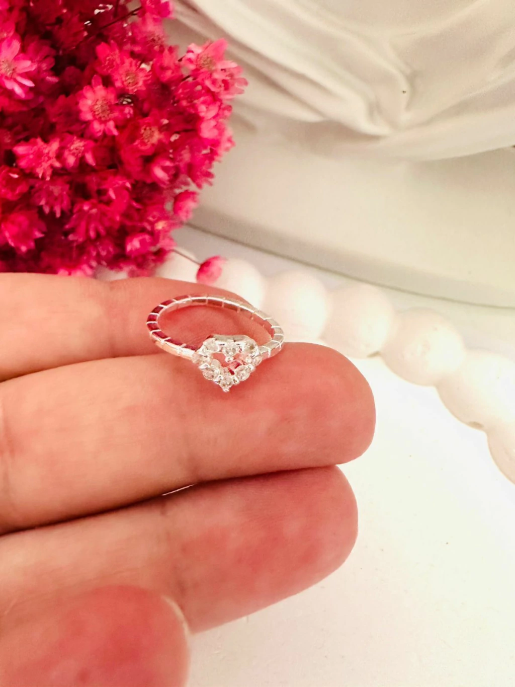 Com um design delicado de coração vazado, este anel não só é uma declaração de amor, mas também reflete sua personalidade única. A zircônia traz um brilho especial, tornando o acessório ainda mais encantador.