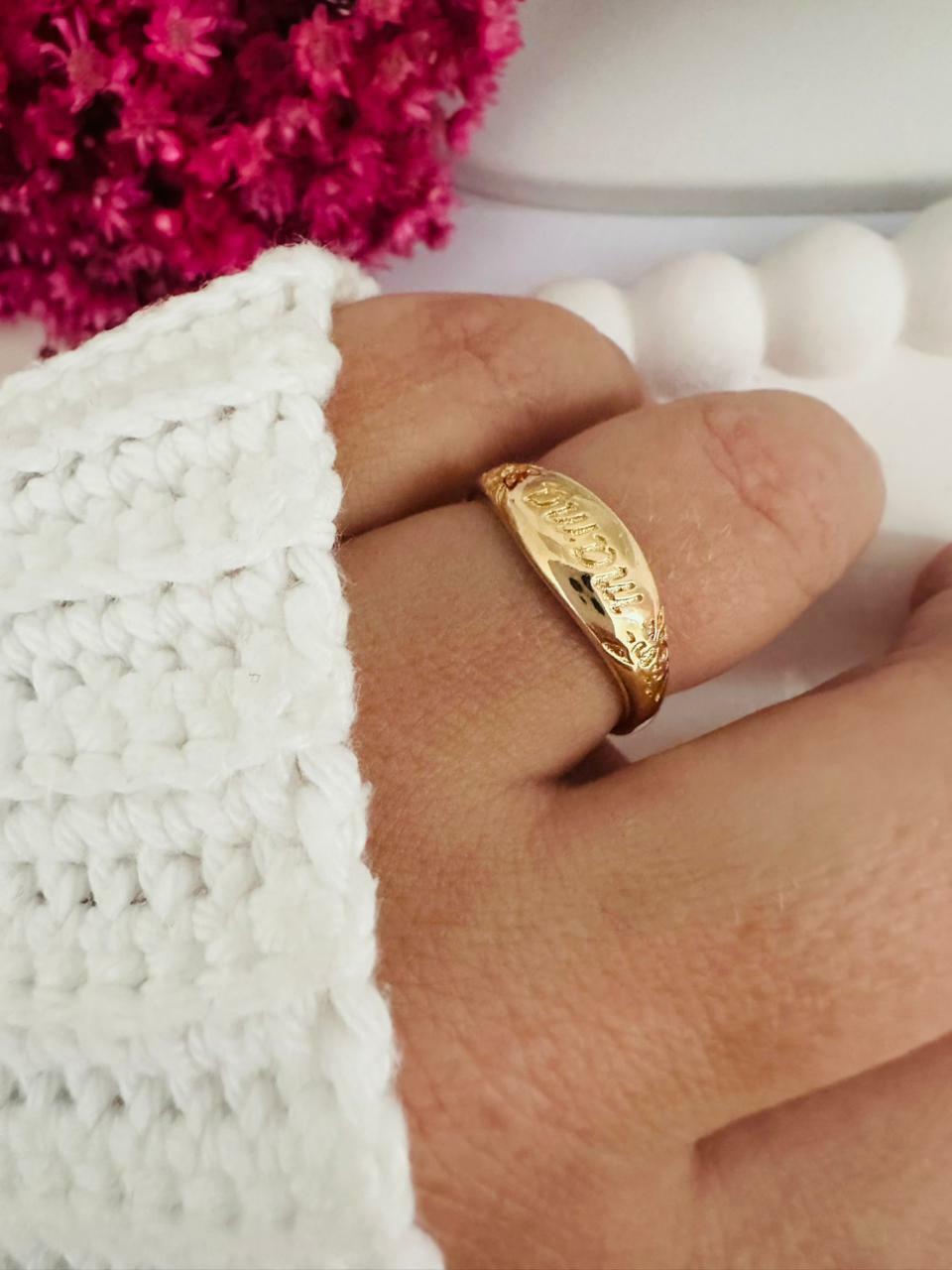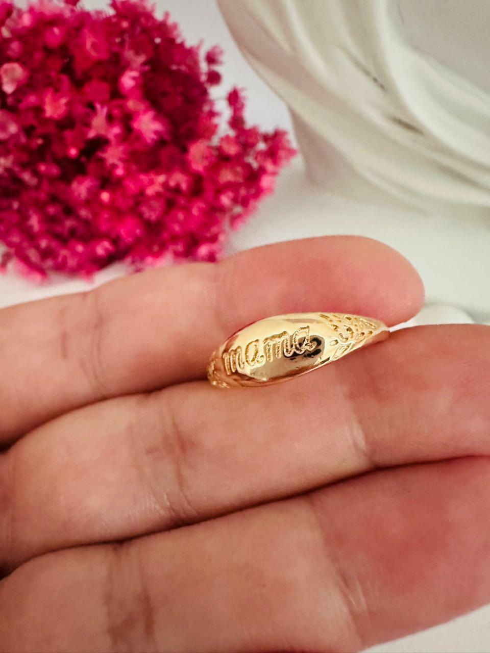 Descubra o Anel Detalhado Mama Our, uma peça sofisticada, banhada em 3 milésimos de ouro e especialmente hipoalergênico. Este anel é ideal para quem deseja um toque de elegância sem abrir mão do conforto.